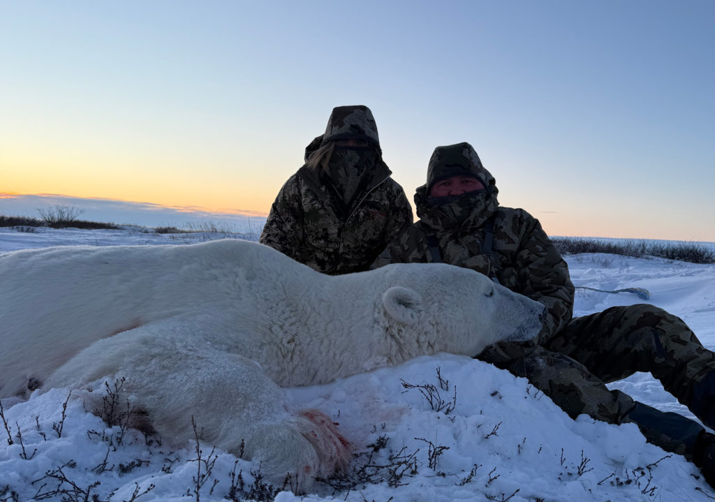 We offer a hunt that starts right in prime Polar Bear country as you fly commercial (Calm Air) from Winnipeg to Arviat which is an Inuit community on the western shores of Hudson Bay with a population of 3000. No need to travel 100 miles or more and spend hours traveling by ATV, snowmobile or dog team just to get to an area to hunt.